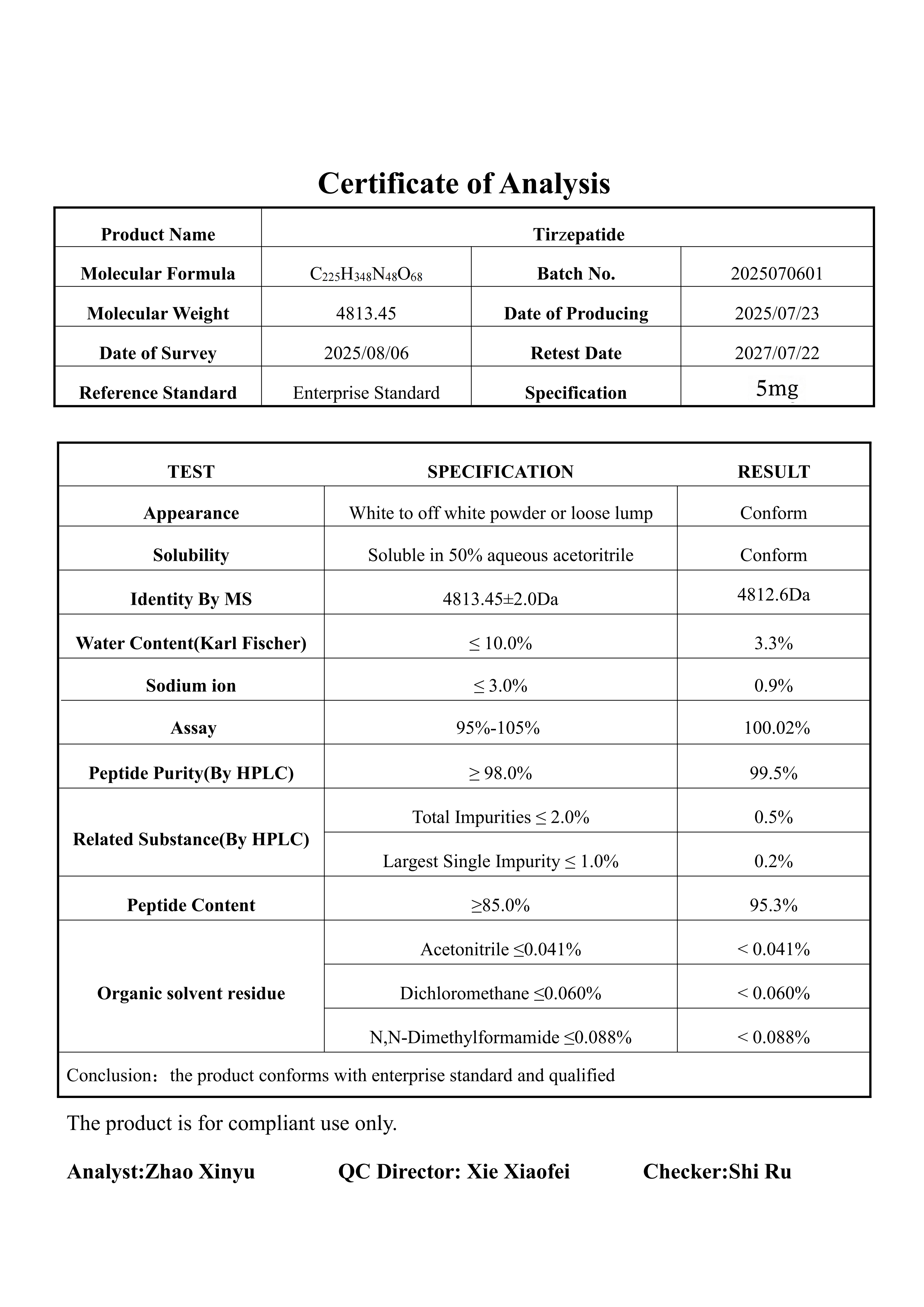 We guarantee that all our products have a purity level of over 99%. Each batch undergoes rigorous quality control and third-party verification to ensure the highest standard of purity and reliability.